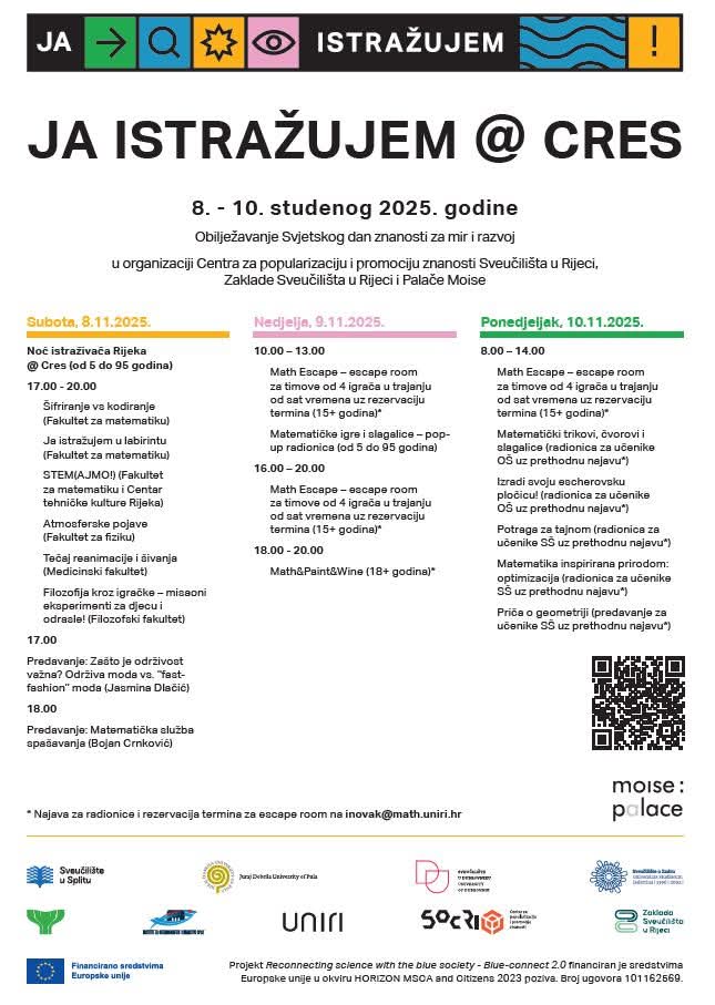 Program Noći istraživača na CresuBy Ivona Traunkar / 8. studenoga 2025. Opis svih aktivnosti pogledajte na linku u nastavku. Noć istraživača Cres, 8.-10.11.2025